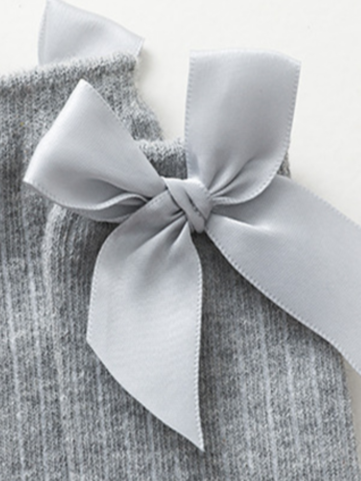 - Scallop trim ribbed cotton socks with lateral satin bow accent