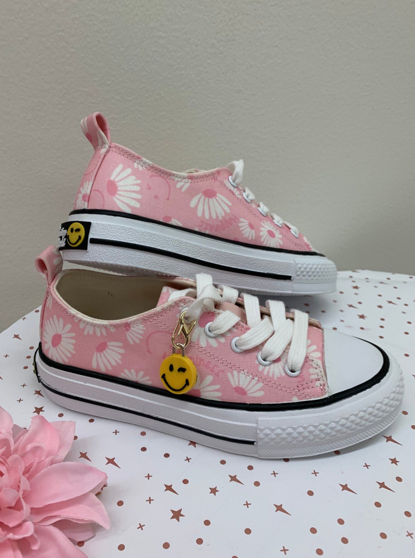 SmileyWorld Flower Power Pink Canvas Sneakers