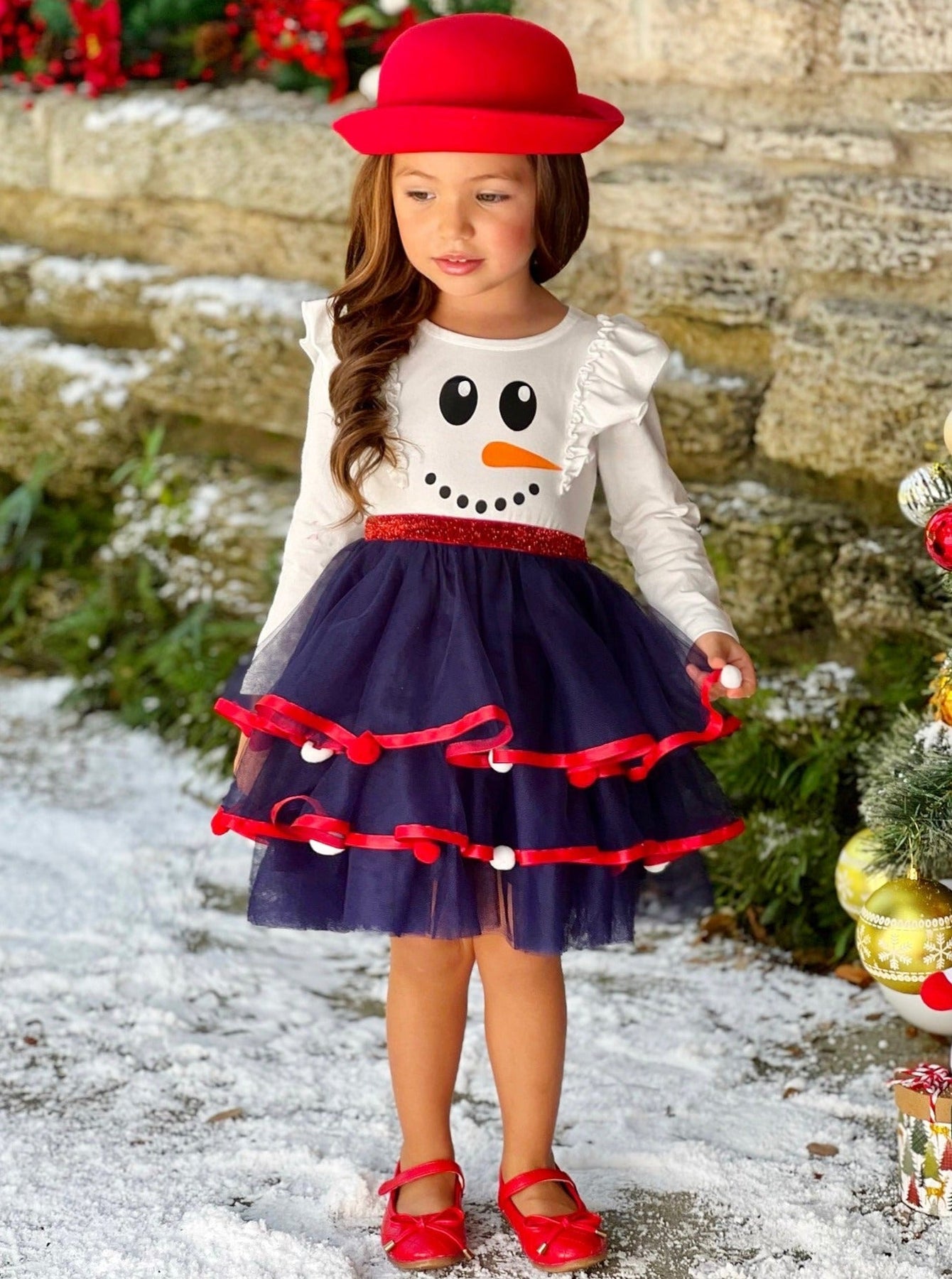 Snow much cuteness in this snowman ruffle tutu dress! This holiday must-have is designed for adorable darlings and will add magic to your little girl's winter wardrobe with glitter, a tiered skirt and cute pom-poms. She'll be so excited to start the celebrations!