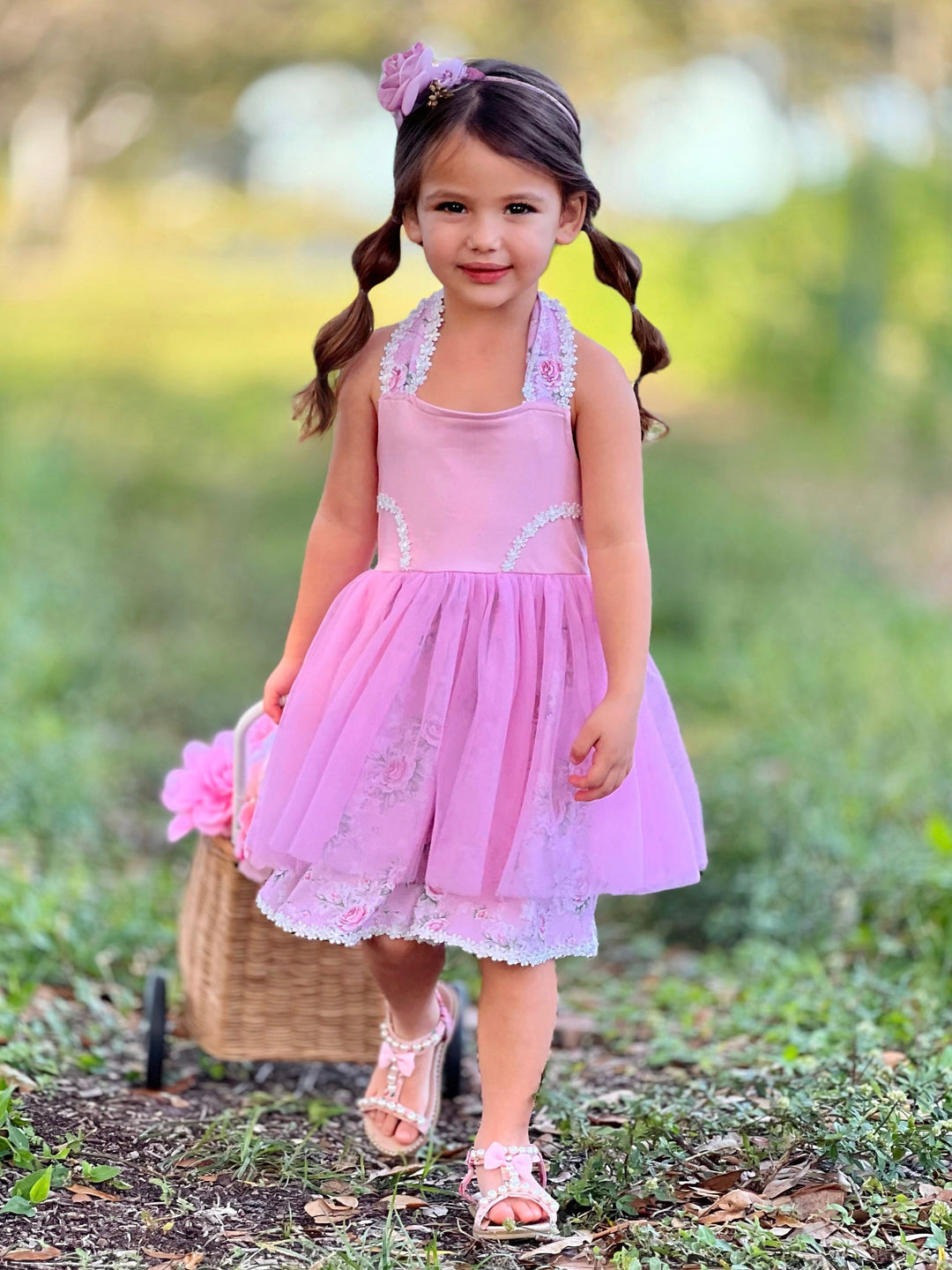 This pink tulle dress will be the most ADORABLE piece in her closet! Floral details and a romantic tulle overlay in the prettiest pink colorway make this a must-have frock that any little fashionista will love!