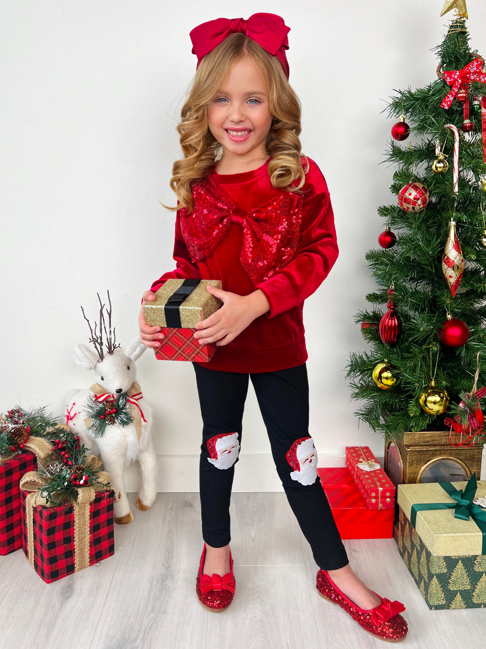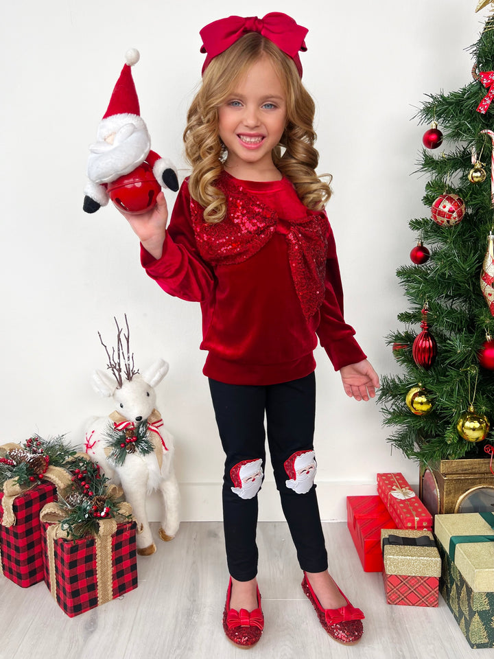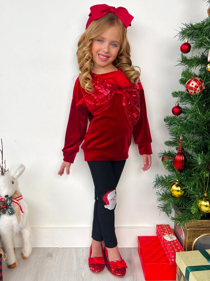 Velvet Sparkle Bow Sweater and Santa Legging Set