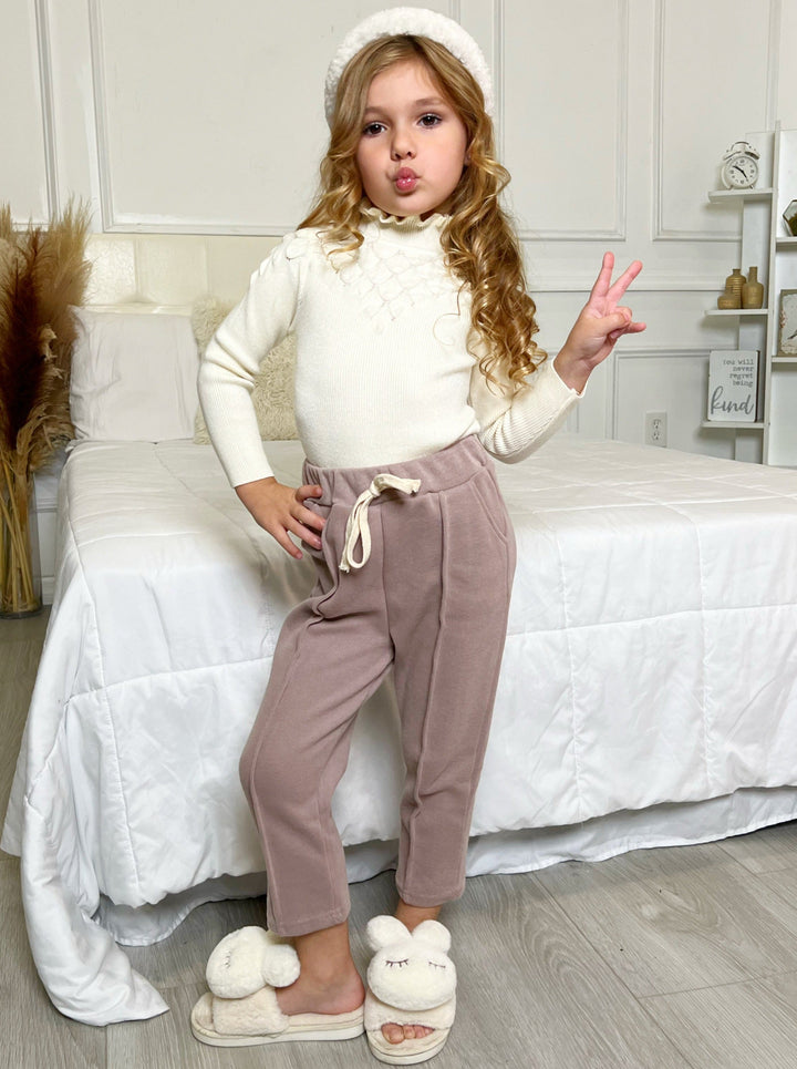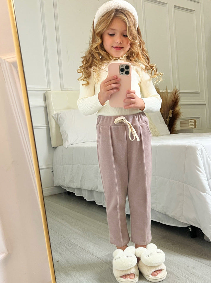 • Love loungewear? Your mini influencer will look so cool in these drawstring sweatpants. With a neutral khaki colorway, they are just the perfect pair to elevate her cozy day wardrobe.