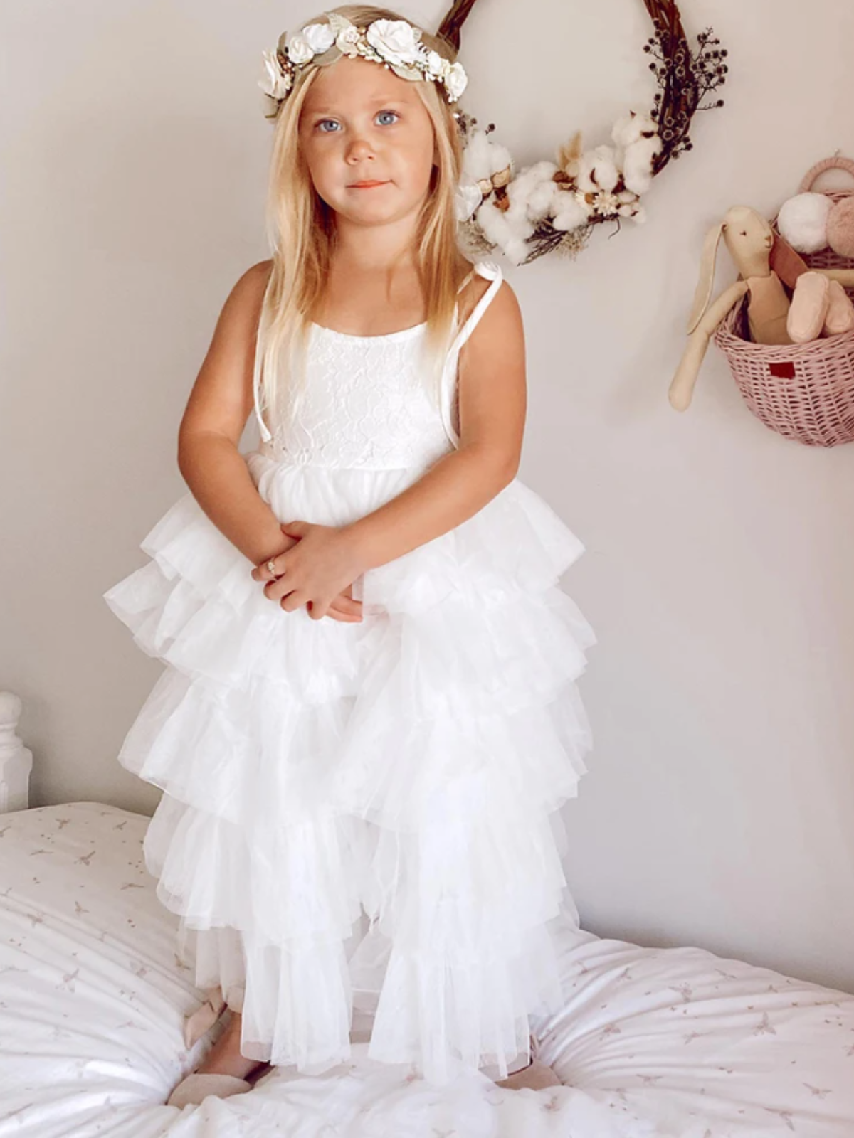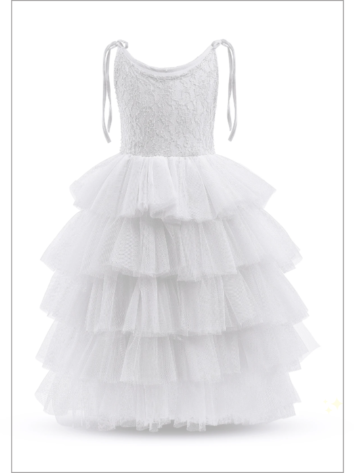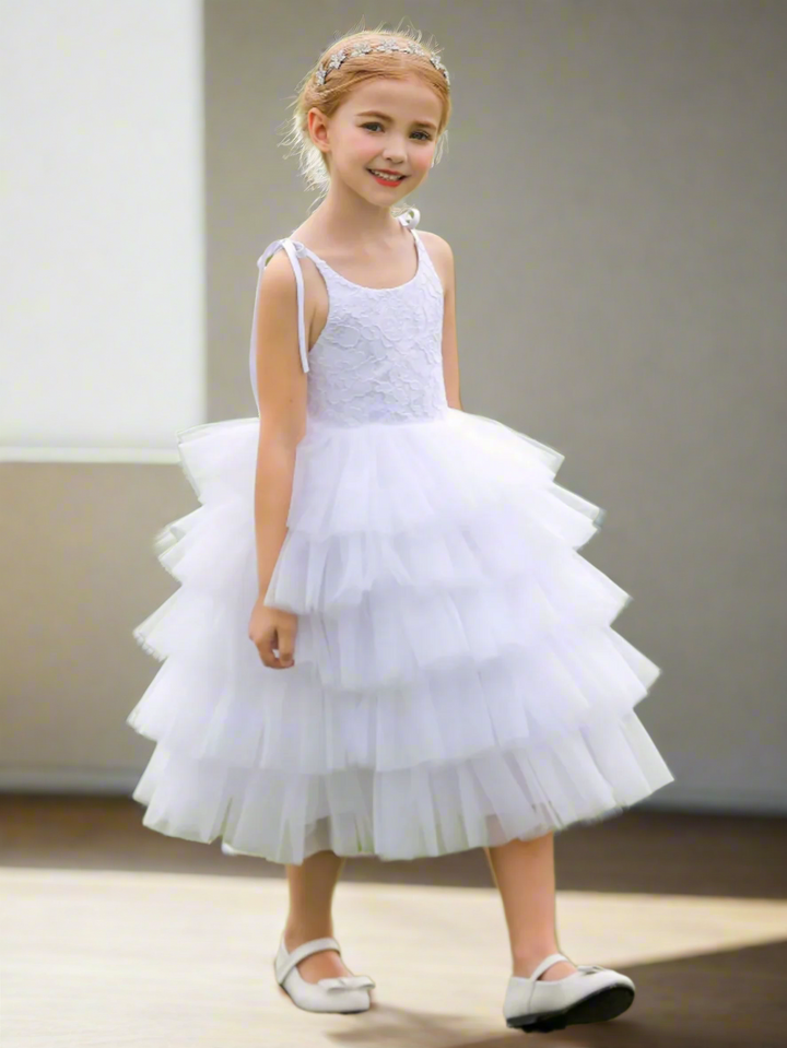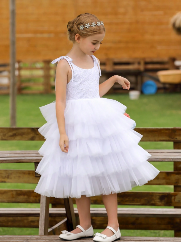 Tiered tulle dress with lace bodice and tie straps