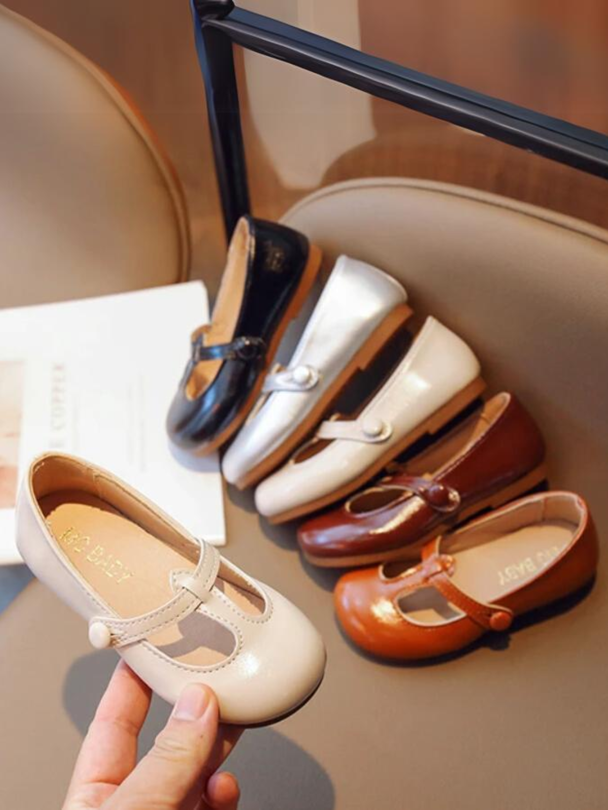 • Vintage-style Mary Jane shoes with stitching details, and button strap closure