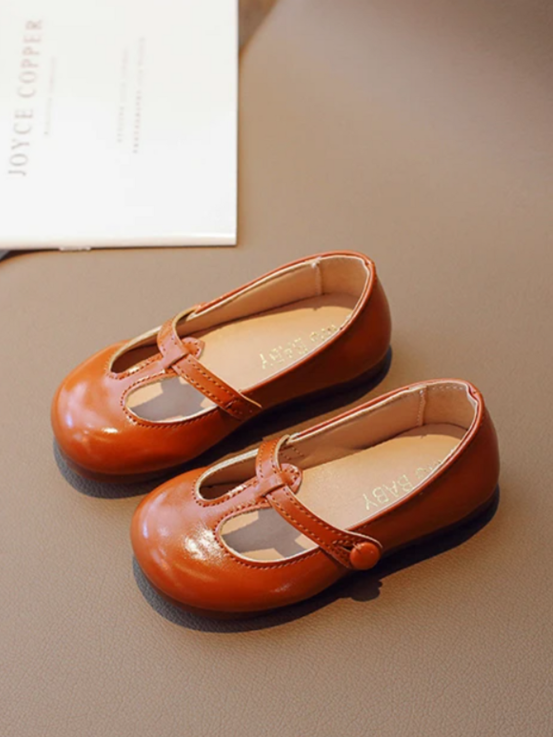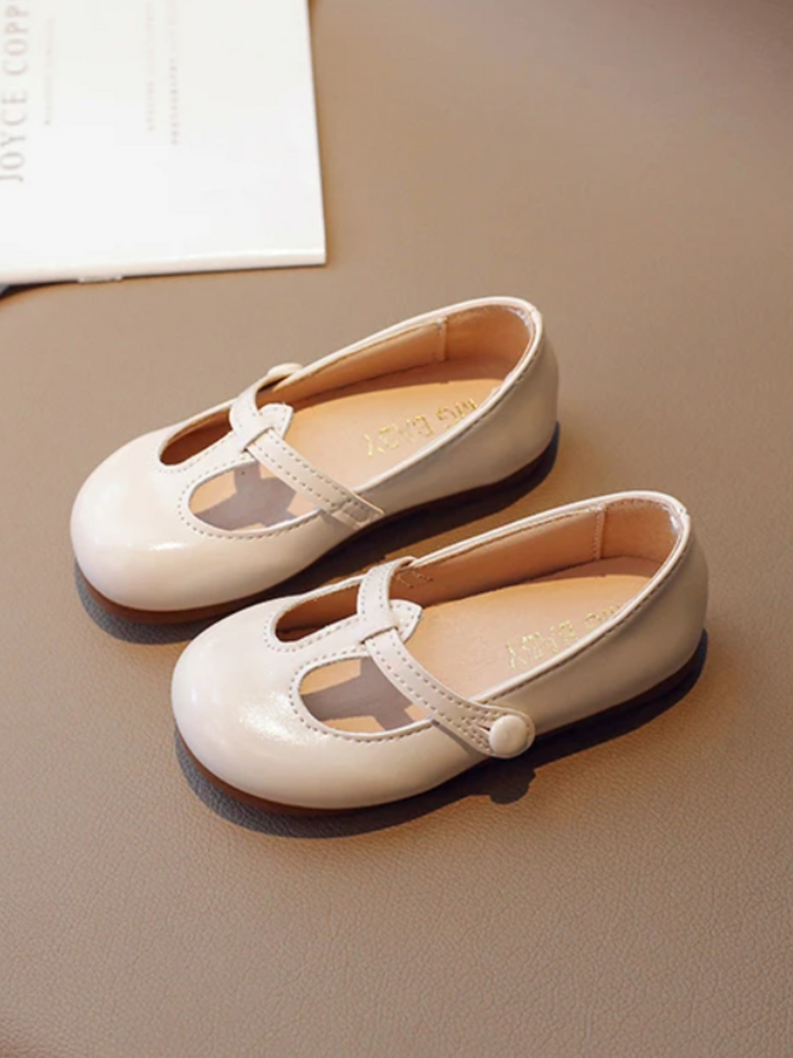 Vintage-style Mary Jane shoes with stitching details, and button strap closure