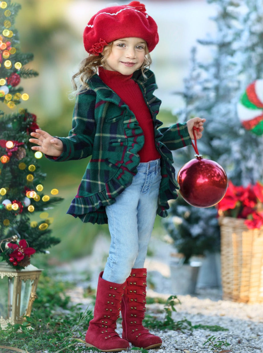 • Hey, mommy! Help me look my most adorable with this cozy blazer ruffle cardigan. This Christmas plaid design is festive, fashionable, and fun no matter the winter occasion. It's the cutest cardigan, EVER!